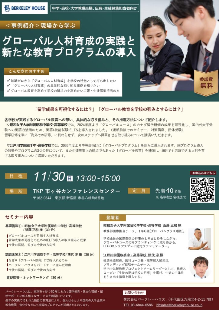 11月30日 教職員様向け無料セミナー(東京:市ヶ谷)開催のお知らせ