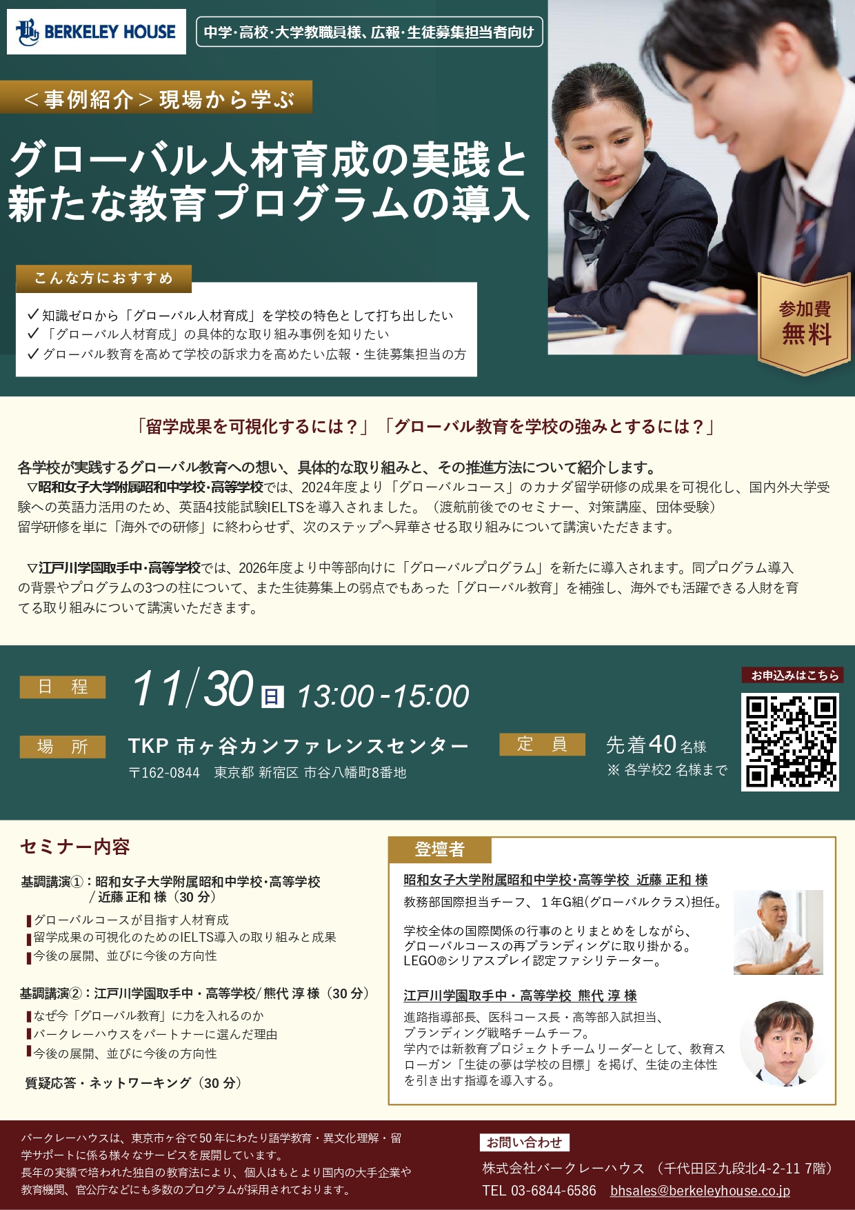 11月30日 教職員様向け無料セミナー(東京:市ヶ谷)開催のお知らせ