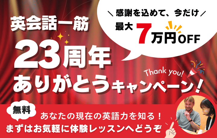 ワンナップ英会話では、10月限定でお得な23周年ありがとうキャンペーンを実施中です。