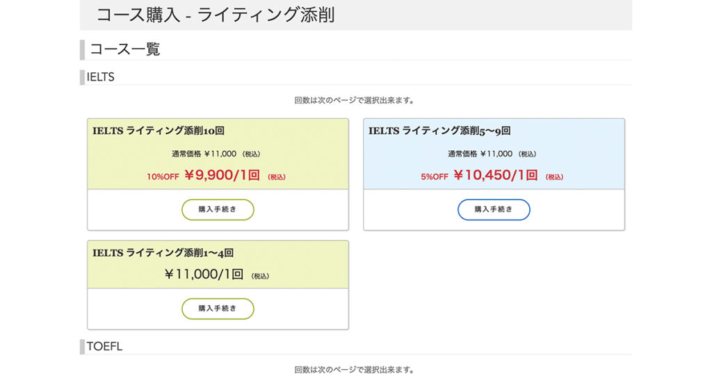 オンラインで1回から購入できるため、IELTSのライティングスコアがなかなか上がらず悩んでいる方はぜひ一度試してみてください。