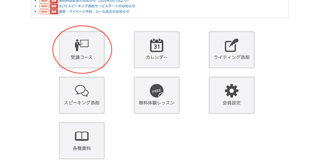購入後はマイページの「受講コース」で内容を確認できます。