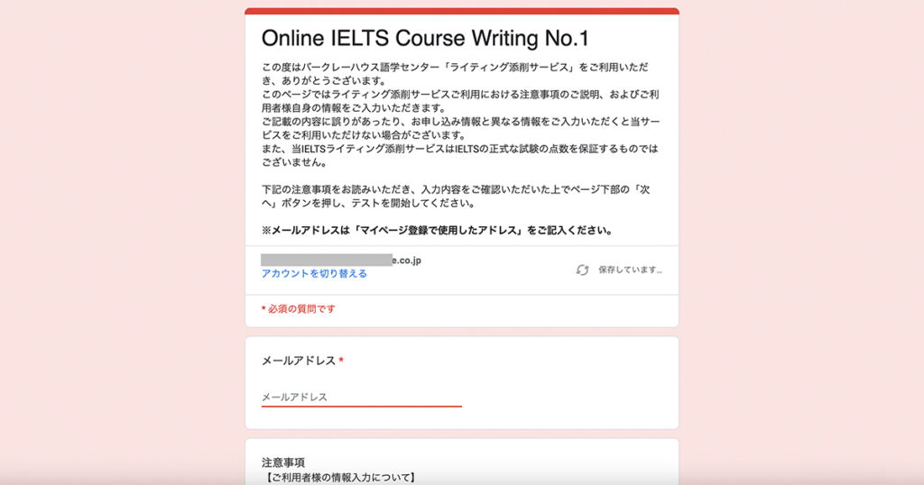 Step 2. 指定のフォームより英作文を提出