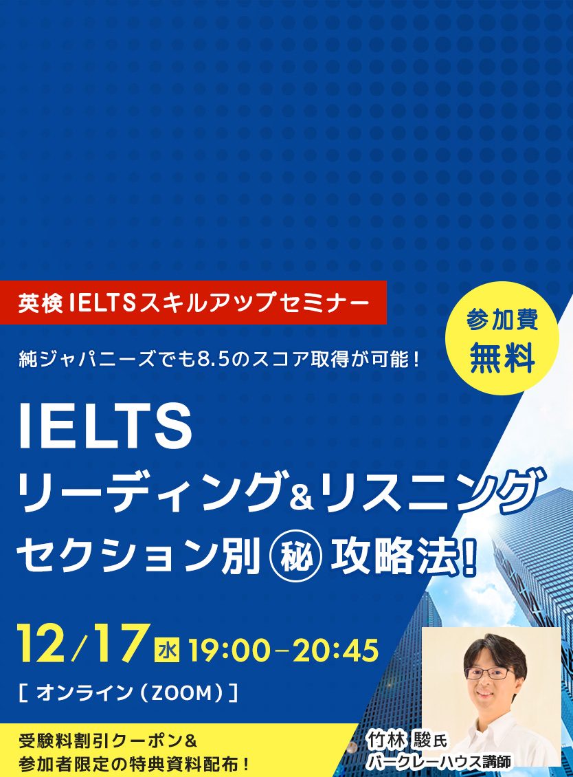 バークレーハウス IELTS公式テストセンター会場での受験限定オリジナル特典あり!!