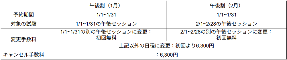 1/1~1/31の期間に2月の午後セッションを予約すると受験料が500円OFF!