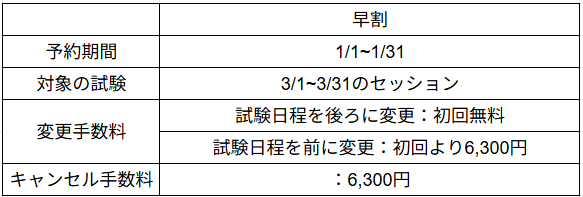 1/1~1/31の期間に2026年3月のセッションを予約すると受験料が1000円OFF!