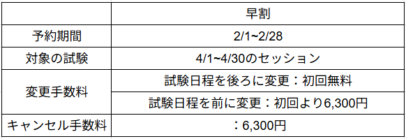 2/1~2/28の期間に2026年4月のセッションを予約すると受験料が1000円OFF!