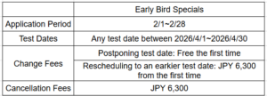 If you apply for a session on an April test date between 1 February and 28 February, you will get a JPY1000 discount!