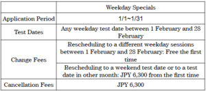 If you apply for a weekday session on an February test date between 1 January and 31 January, you will get a JPY 500 discount!