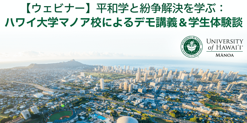 ハワイ大学マノア校 松永平和・紛争解決研究所によるオンライン特別セミナーを開催いたします。分野の専門家によるミニ講義や、日本人学生による留学体験談を通して、この学びの魅力をより深く知っていただける内容です。