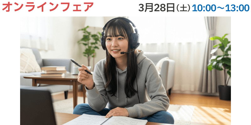 今回は、対面フェア(東京)を3月20日(金・祝)14:00〜18:00に、オンラインフェア(Zoom)を3月28日(土)10:00〜13:00に開催します。