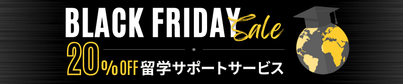 【BLACK FRIDAYキャンペーン】留学サポートが20%割引(11/21~12/6まで)