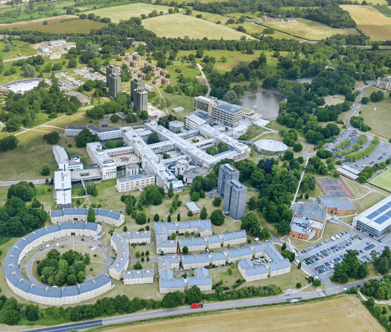 イギリス東部コルチェスターにある公立研究大学で、国際色豊かな学生環境と研究重視の教育が特徴で、緑豊かで落ち着いたキャンパスで学業・学生生活を両立できます。